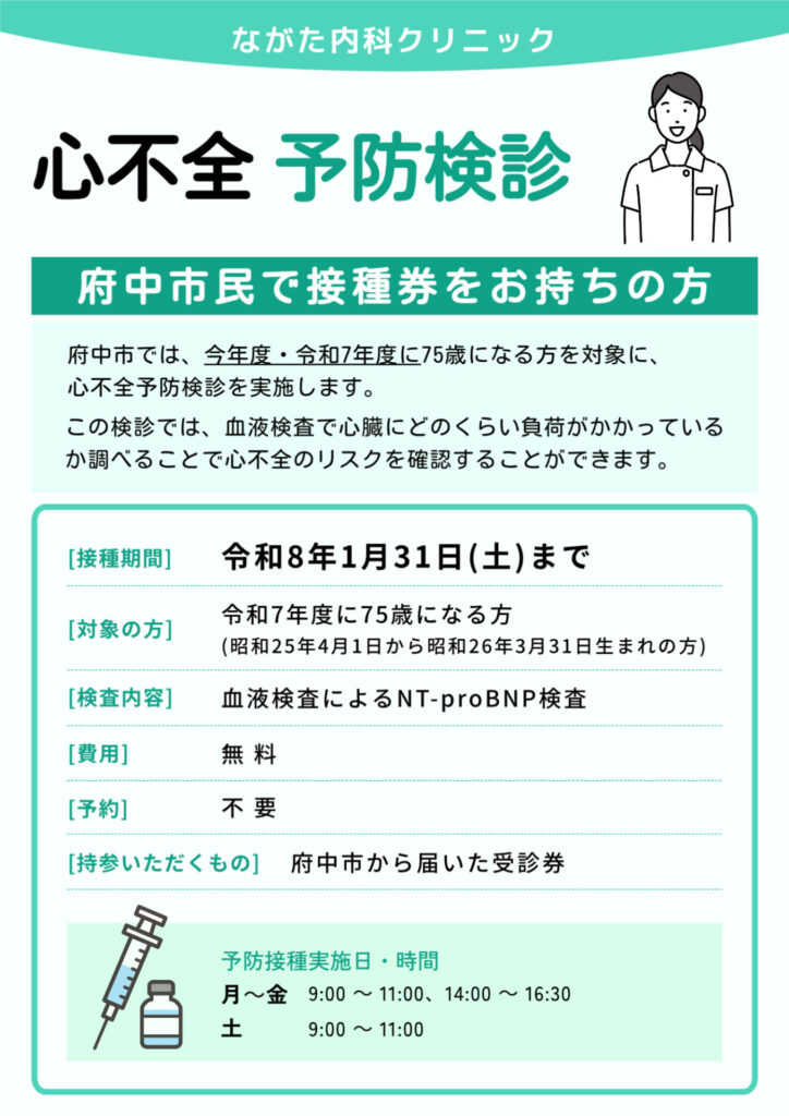 府中市では6月から、75歳になる方を対象に「心不全予防検診」を実施します。